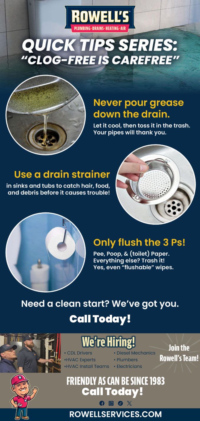 Keep your drains flowing freely with these simple maintenance tips from the pros at Rowell's!