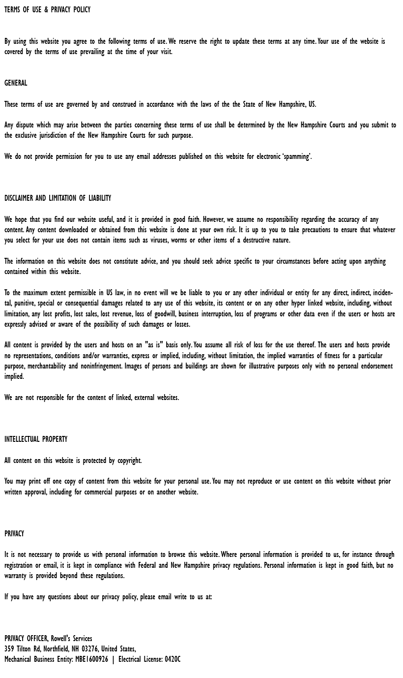 "Friendly As Can Be Since 1983 - Rowell's Services has been been helping our Barnstead customers for over 40 years.